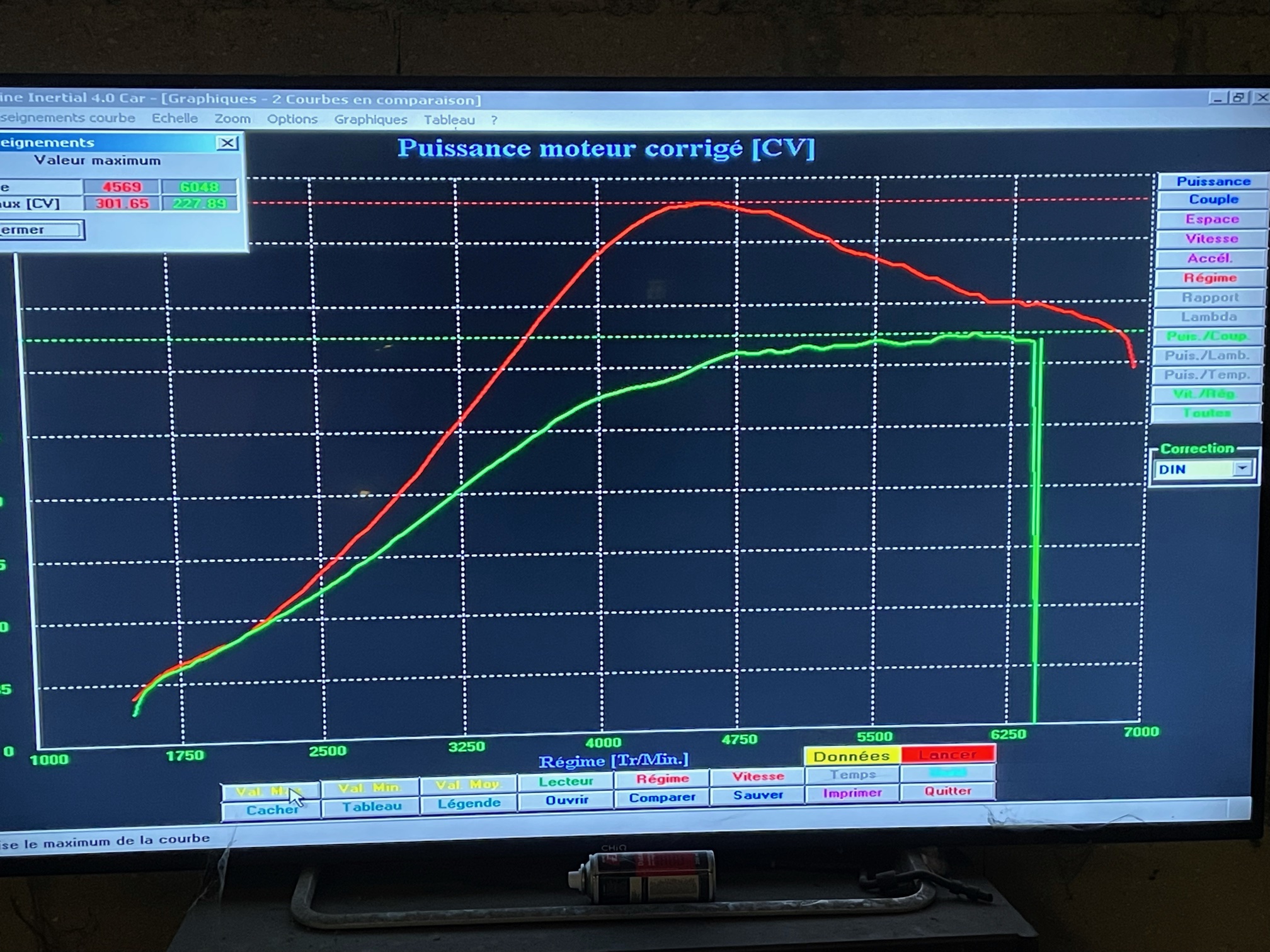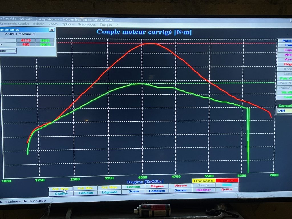 The first dyno (301/227) was with the stock tune, 3″ downpipe and gasoline. The second dyno (485/240) was with a VAST tune and E85